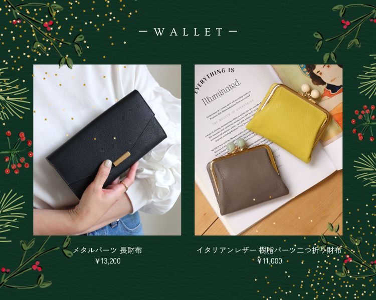 ▶イタリアンレザー樹脂パーツ二つ折り財布 ¥11,000(税込)