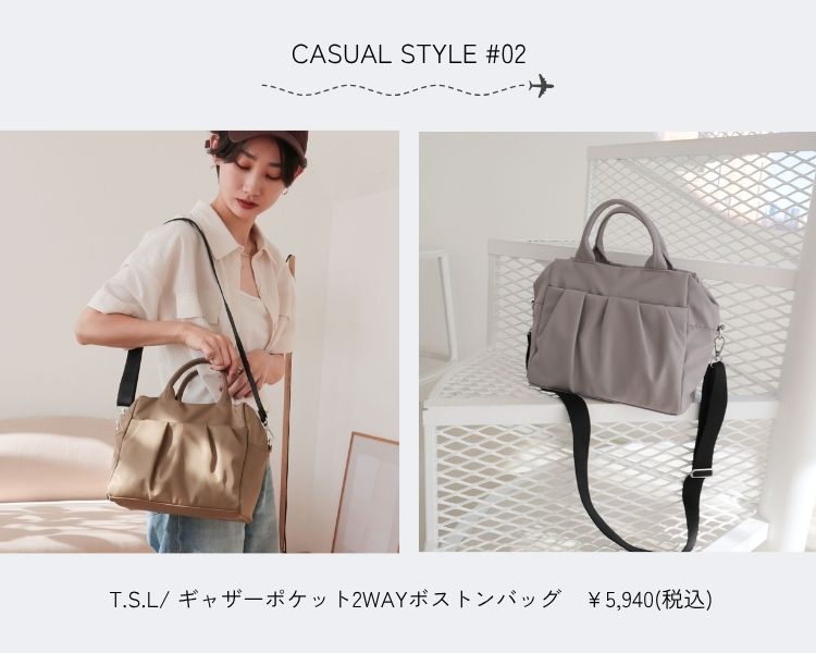 ▶T.S.L/ ギャザーポケット2WAYボストンバッグ ¥5,940(税込)