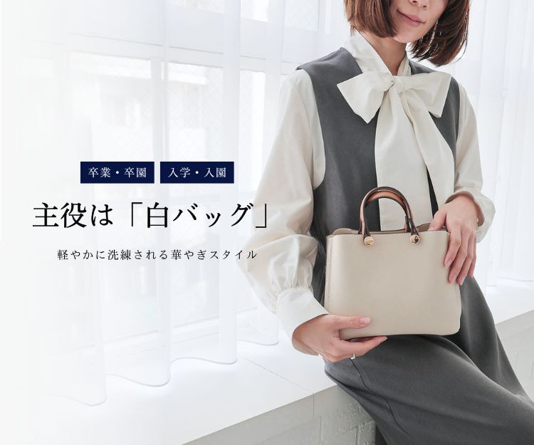 実は、コーディネートの印象を左右するのは、「バッグの色」なんです。ブラックなどのお洋服に、一点の「白」を投入するだけで装いはパッと明るく、軽やかに洗練されます。 本日は、ハレの日の装いを格上げしてくれる、白系バッグをご紹介します。